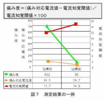 2007年の線維筋痛症公開シンポジウムで、聖マリアンナ大学の岡寛準教授は、ニプロ(株)が発売した「Pain Vision」(痛み定量化装置)で、線維筋痛症患者が感じる痛みのデータを発表しました。
